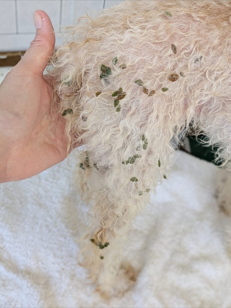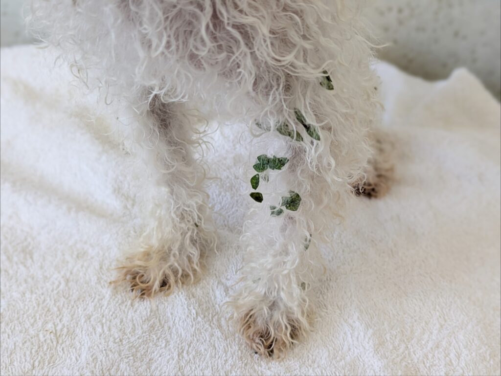 特に、プードルのようにカールした毛やふわふわとした柔らかい毛、長い毛には絡まりやすく、放置するとこの葉を核としてどんどん毛玉が成長していく原因となります。