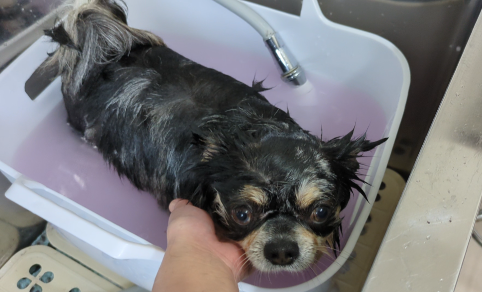 思いきり遊んだ後は、もちろんシャンプーしますよ。