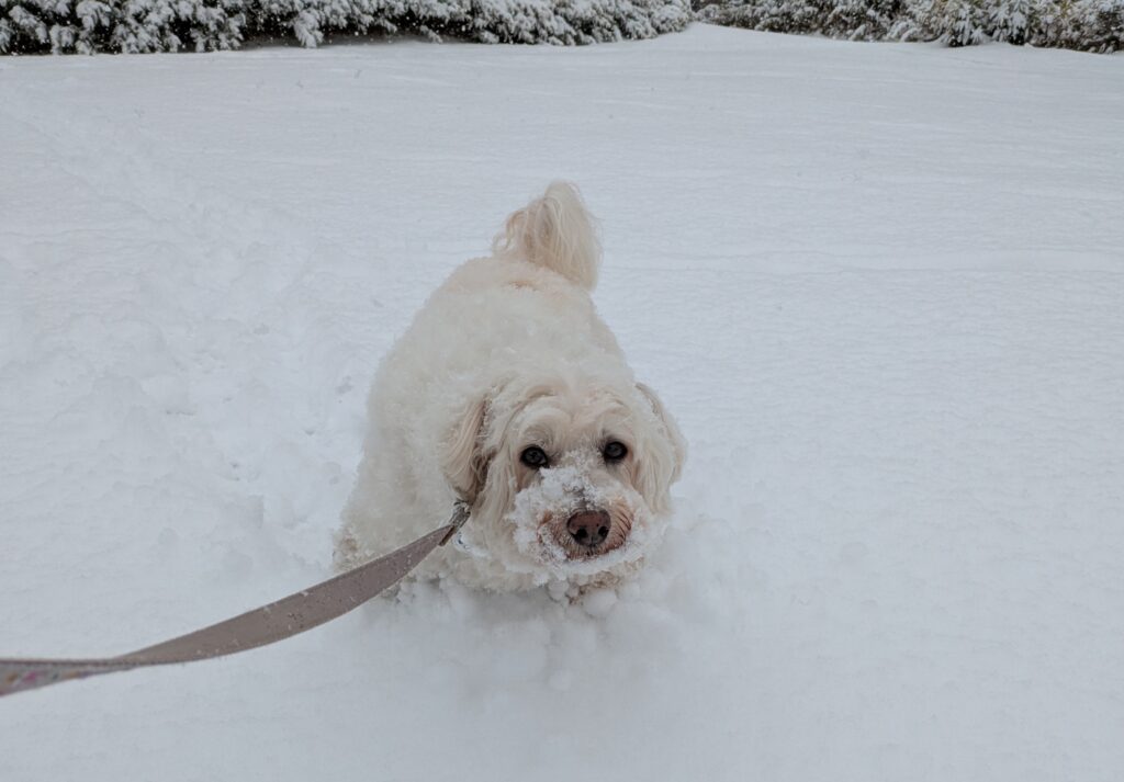 当店の看板犬あずきは、雪の中をパフパフしながら走りまわっていましたよ。