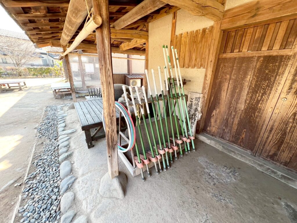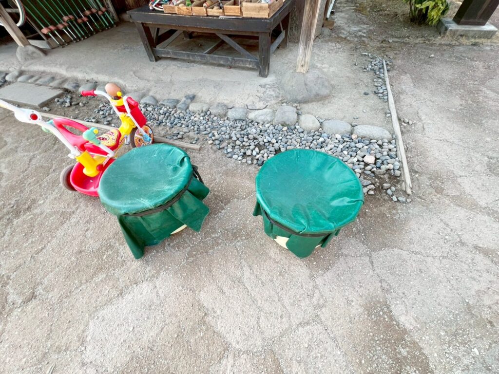さらに、「旧金子家住宅」の前には、昔のおもちゃで遊べる場所がありました。